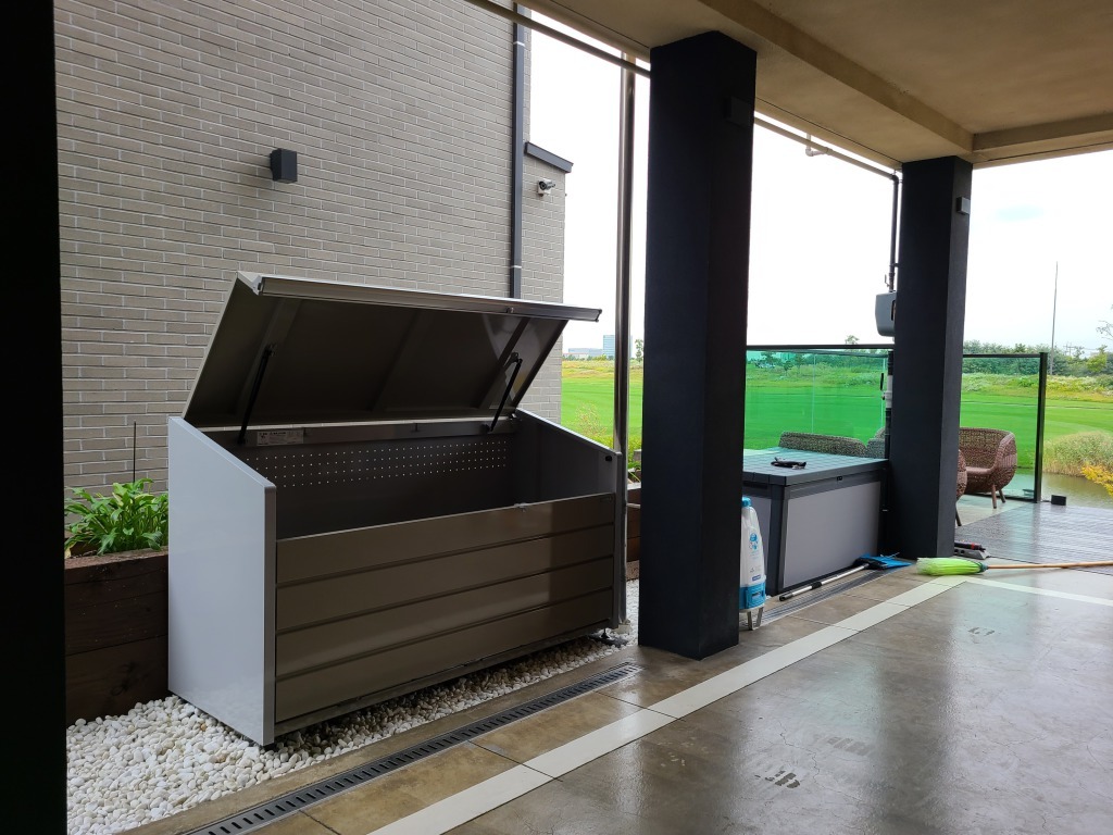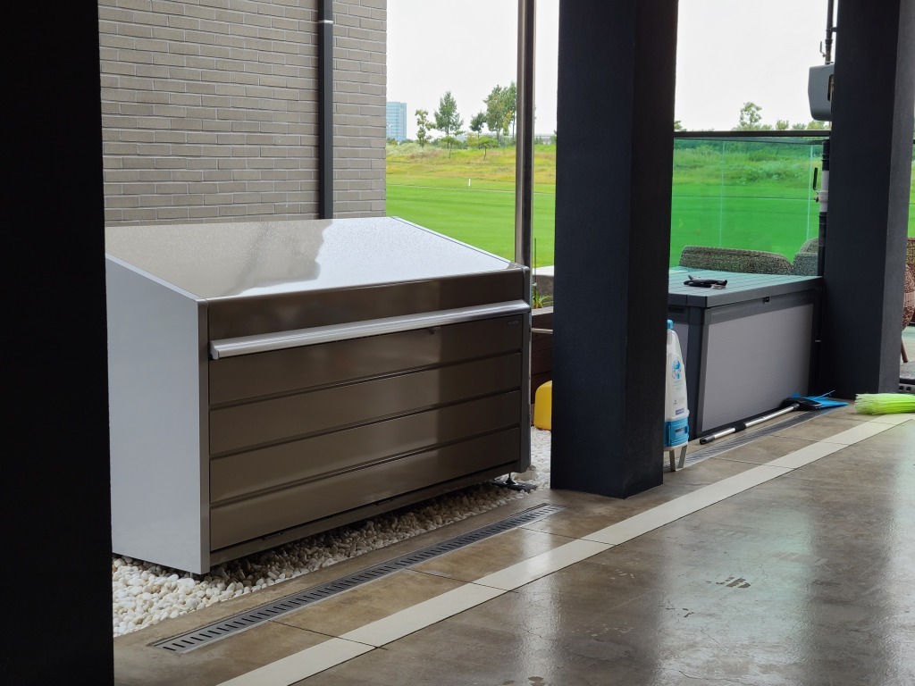 쓰레기함으로 사용되지만, 강아지 사료나 비료, 물조리개 등 정원 물품을 보관하는 용도로도 사용을 합니다