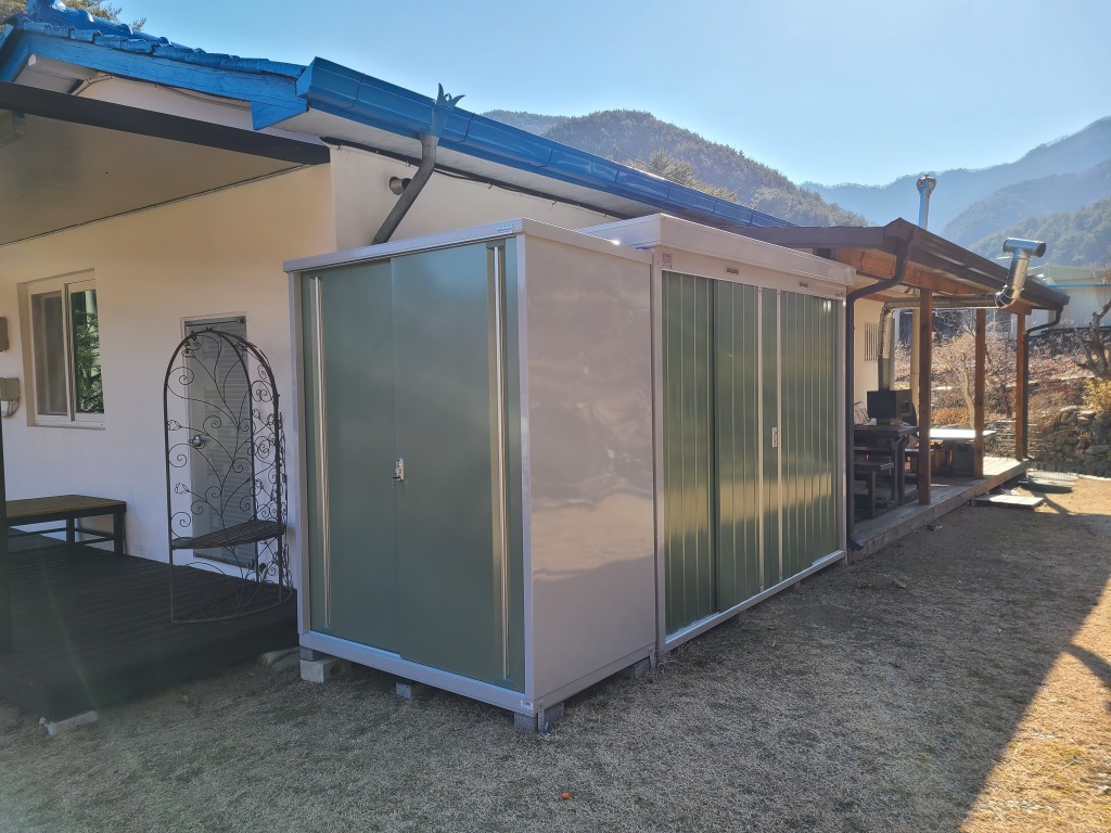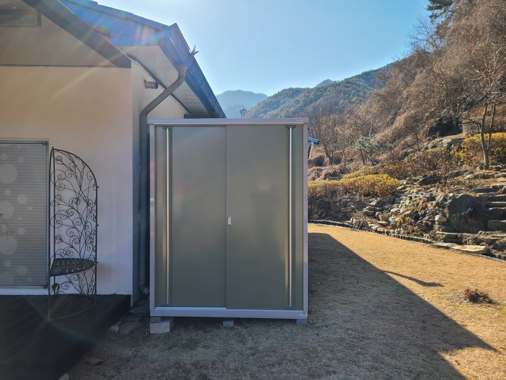 안동 길안면 물품 보관용 조립식창고 MJX-159EP 1520*, 905*, 1903* (0.30평)크기이며, 그린 (LG) 색싱의 문 입니다.