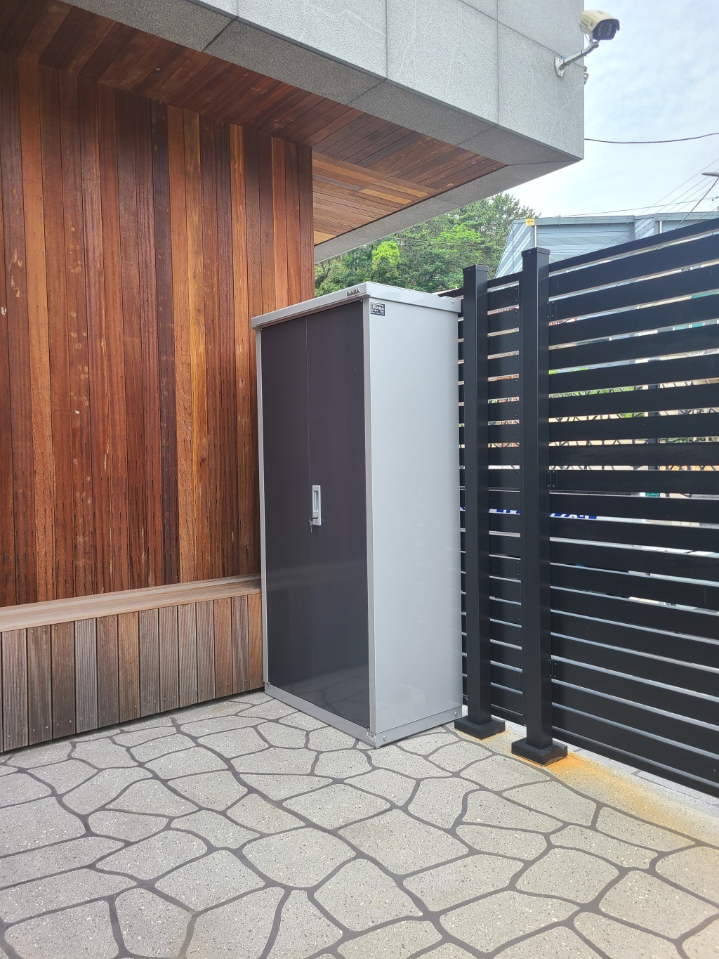 부산 기장 물품보관용 조립식창고 BJX-095E 900* 515* 1903* ( 0.14평 ) 크기이며, 차콜그레이 ( CG ) 색상의 문 입니다.