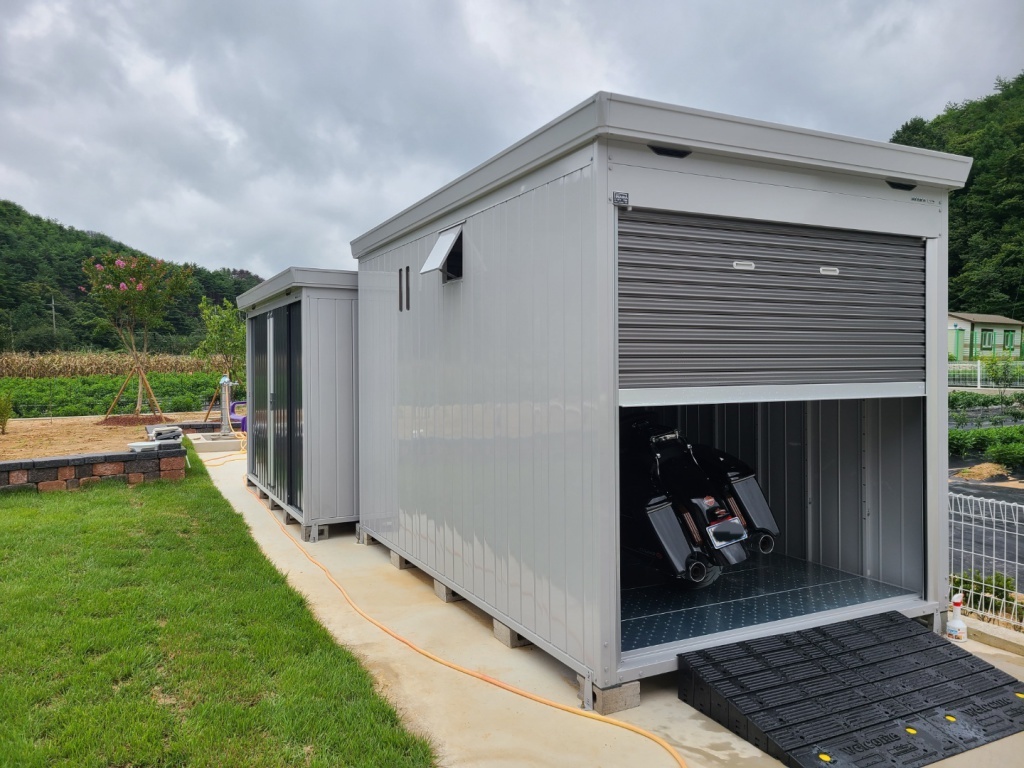 강원도 동해에 설치된 바이크 주차장과 중형 창고이며,