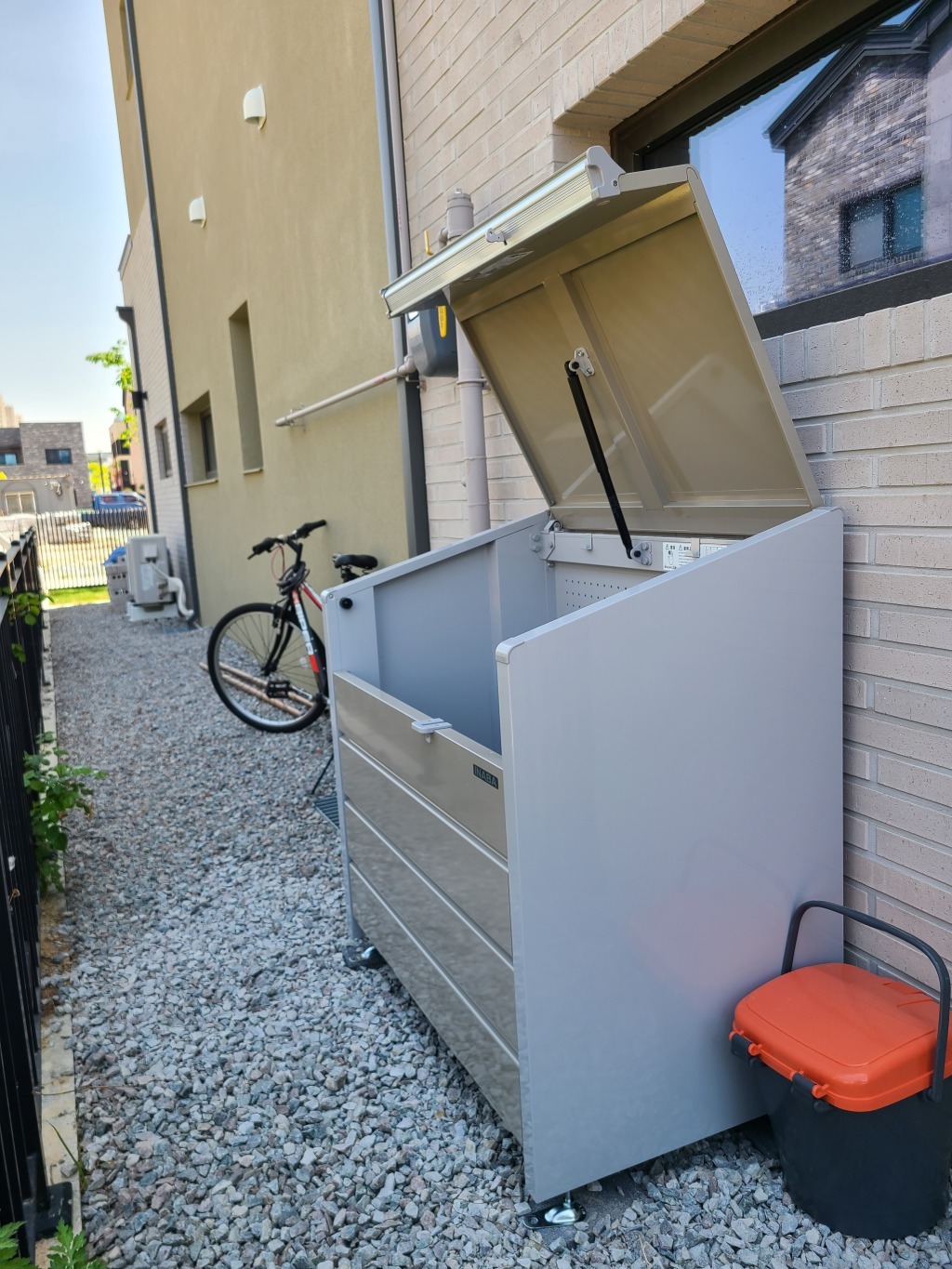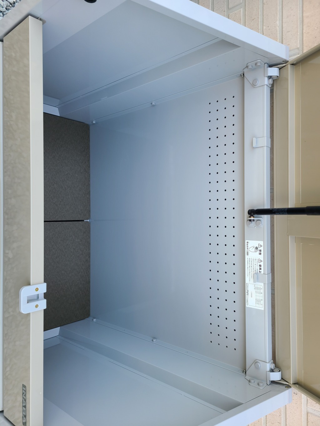 이나바창고 아진하모니 쓰레기함의 문은 “가스쇼바(유압식)” 열림 장치로,