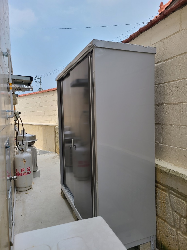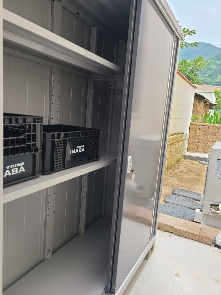 경남 김해 진영읍 보관용 조립식창고 MJX-176EP 1740* 515* 1903* ( 0.32평 ) 크기이며, 프리미엄 그레이 (PG) 색상의 문 입니다.