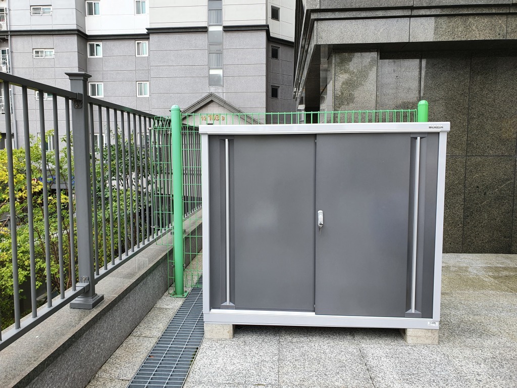 대구 현풍에 위치한 어린이집 물품창고 MJX-157C 1520* 755* 1303* (0.35평) 크기이며, 프리미엄 그레이 ( PG )색상의 문 입니다.