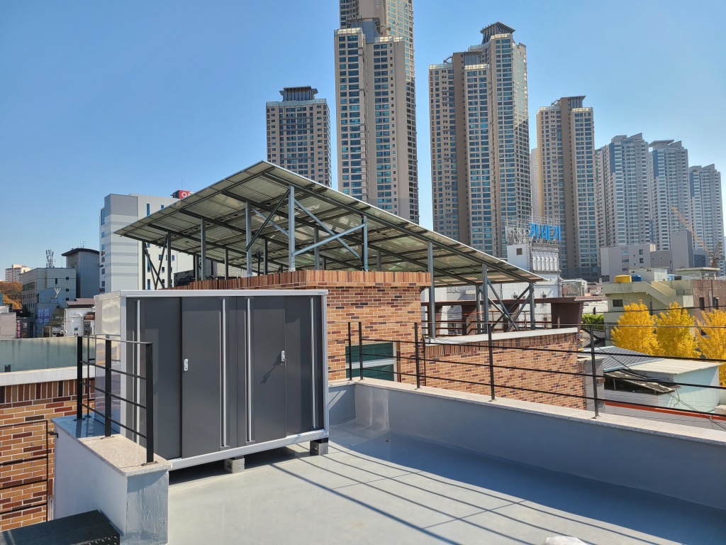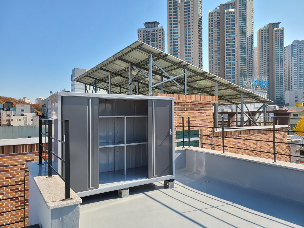 일반적인 건물위 옥상에서도 적절히 오랫동안 사용이 가능한 조립식 창고 입니다 ^-*/