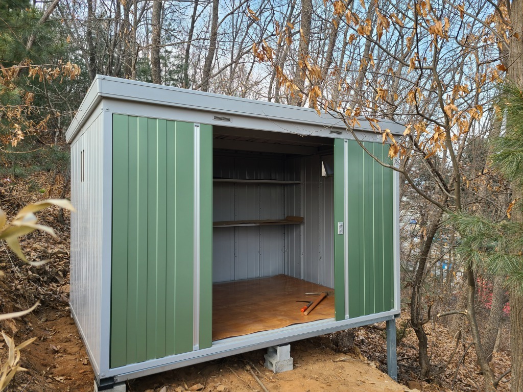 양평군 강상면 물품 보관용 조립식창고 NXN-65S 3050* 2210* ( 2.04평 ) 그린( OG ) 색상의 문 입니다.