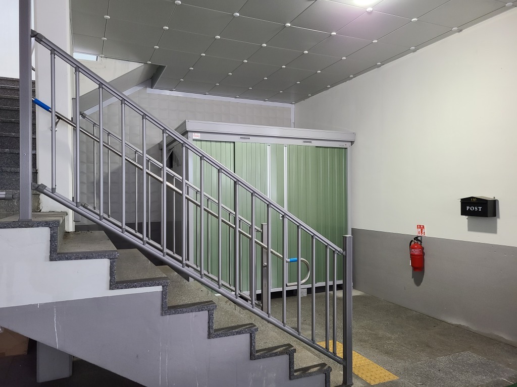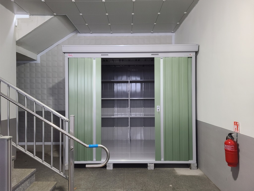 수성구 파동 전원주택단지 보관용 조립식창고 NXN-50H 2630* 1790* 2375* ( 1.43평 )  크기이며, 그린 ( OG )색상의 문 입니다.
