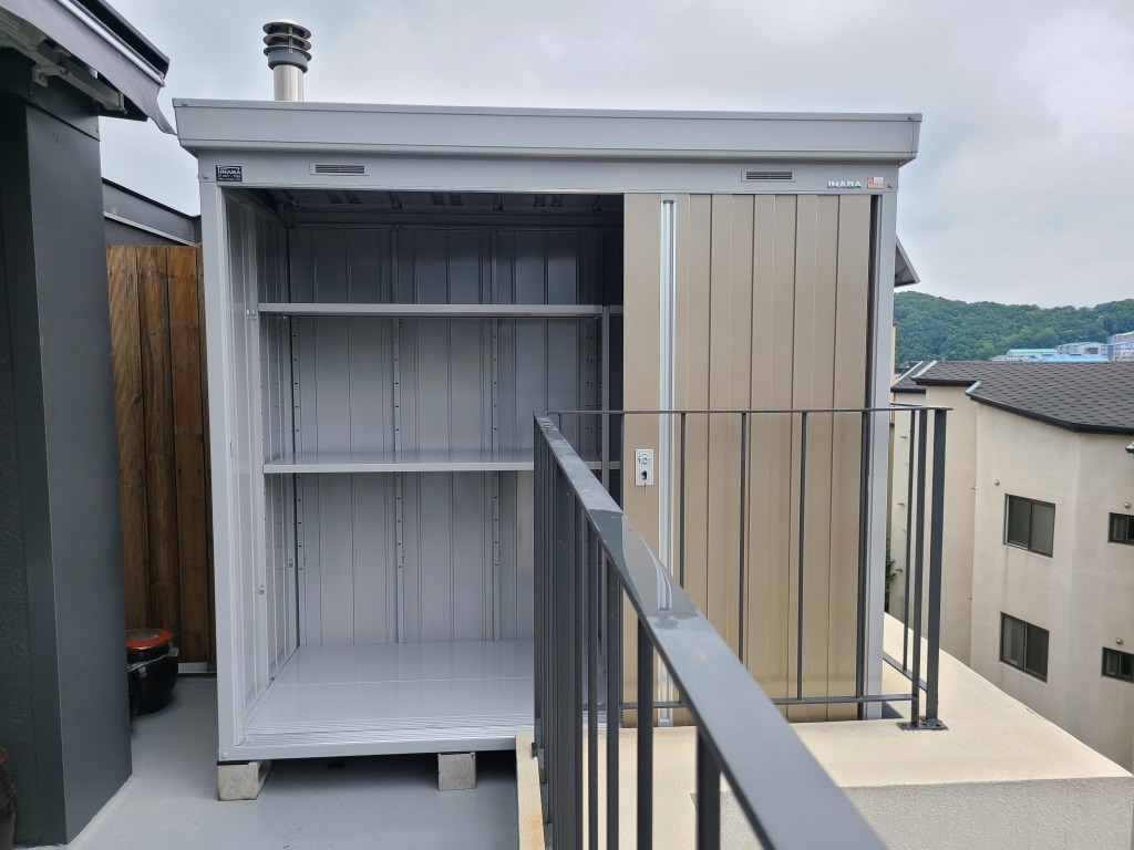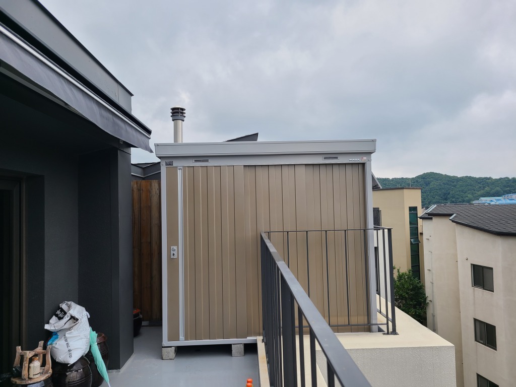 광주 옥상 조립식창고 NXN-21S 2210* 950* ( 0.64평 ) 크기이며, 멜란지 브라운 ( MB ) 색상의 문 입니다.