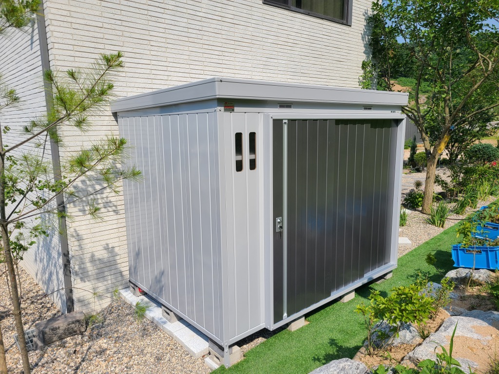 건물의 외관이랑 너무 잘 어울리는 조립식 창고 입니다.