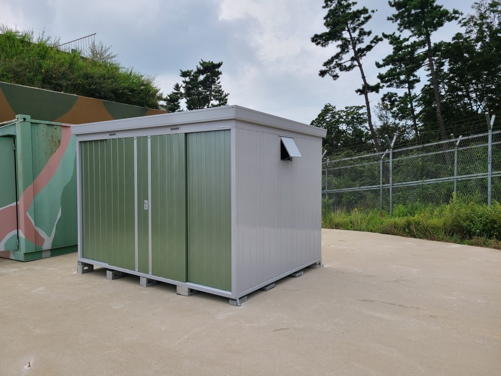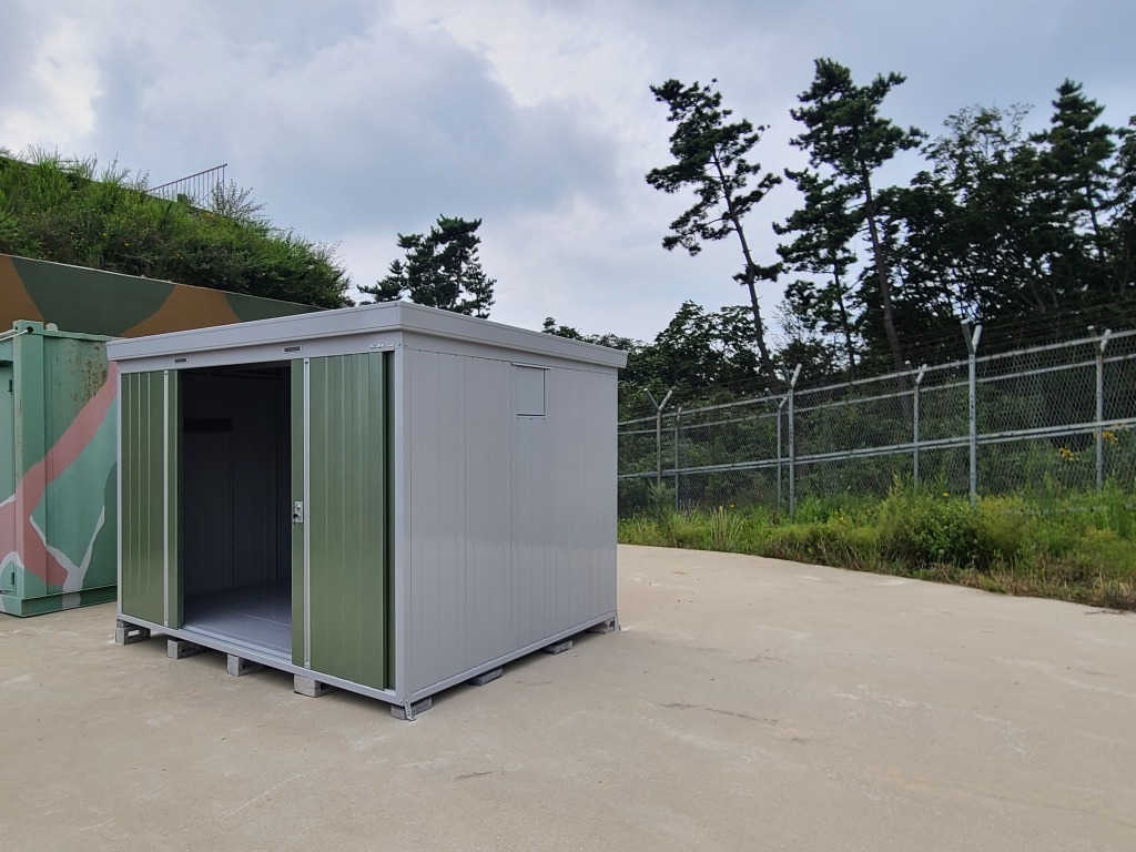 백령도 공군부대 물품 보관용 조립식창고 NXN-65S 3050* 2210* ( 2.04평 ) 크기이며, 그린 ( OG ) 색상의 문 입니다.