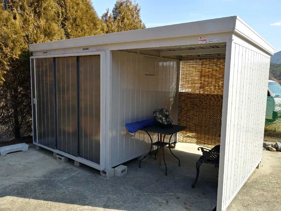 창고를 사용하면서 조금이라도 창고바닥에 흠집생길까봐서 현재 고무로된 바닥재를 깔고 사용하고 있어요.